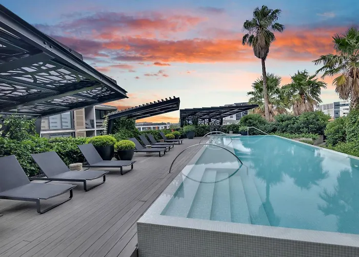 Les clients ont accès à une cuisine complète avec une cafétière/théière électrique, un réfrigérateur et de la vaisselle pour préparer leurs repas. University Hotel sert des plats de la cuisine italienne et est situé à proximité de la résidence. La résidence est à 20 minutes de trajet en voiture de l'aéroport d'Essendon. L'appartement dispose d'une piscine sur le toit.